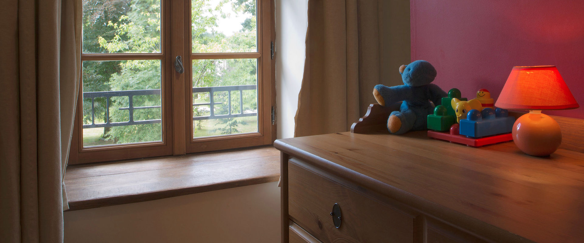• 3 rooms (1x queen-size bed 1.60 x 2.00m ; 1x 2 single beds 0.90 x 2.00m ; 1x baby cot + commode), high chair