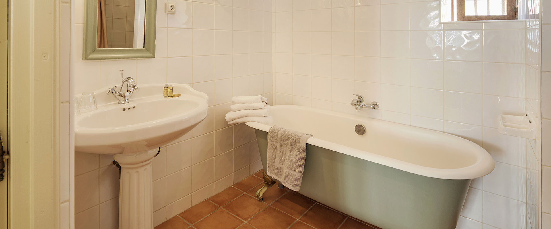 • Bathroom with bath, washbasin, toilet and shower, hairdryer, toiletries